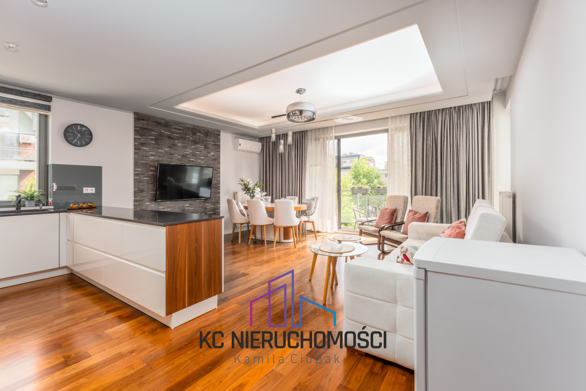 - przestronny salon z aneksem kuchennym i wyjściem na balkon,